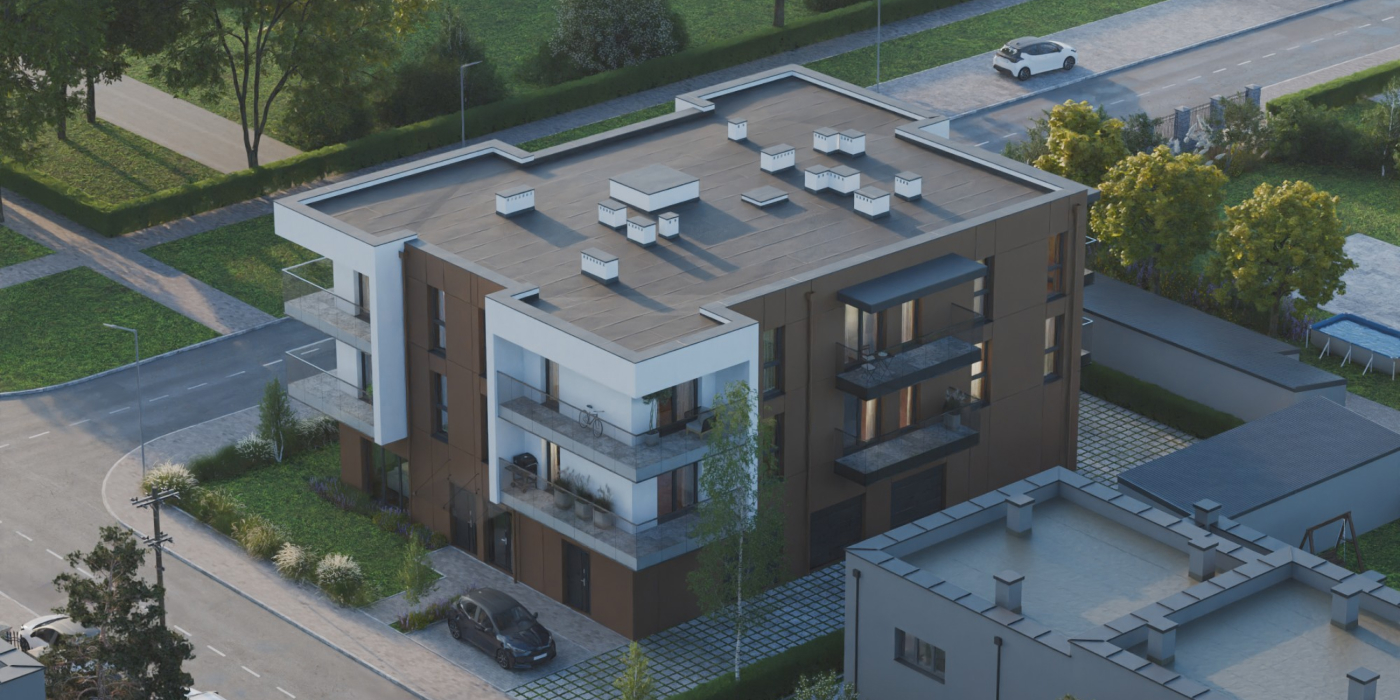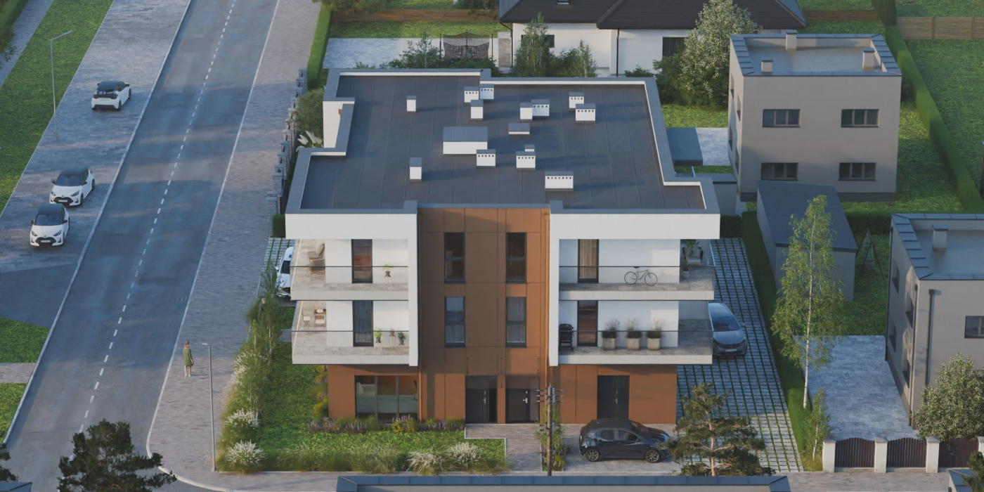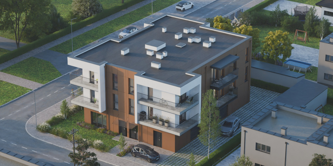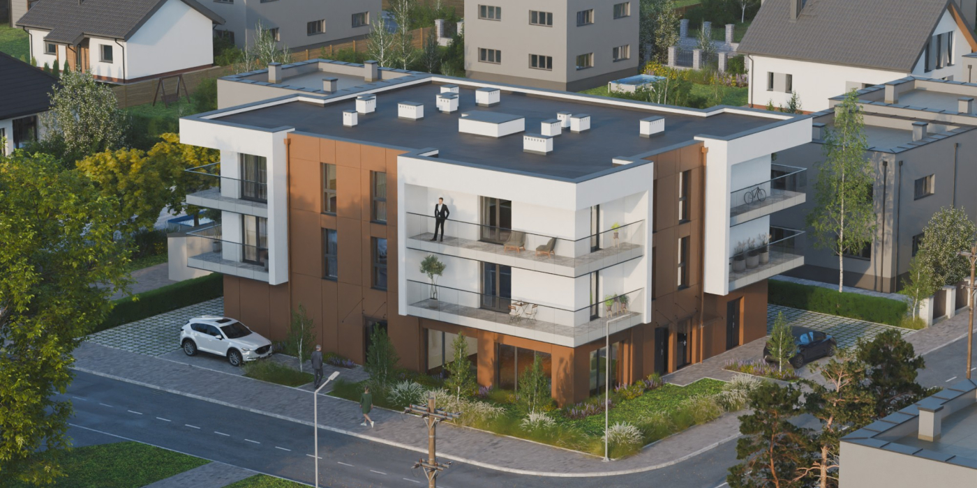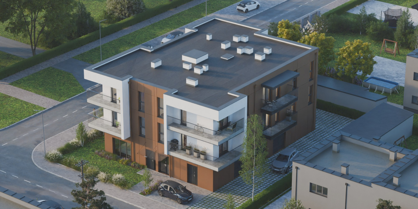 Inwestycja na osiedlu Szwederowo, przy ul. Nowej 9. Kameralny budynek wielorodzinny, trzykondygnacyjny stanowiący 14 mieszkań od 39 m² do 71 m².