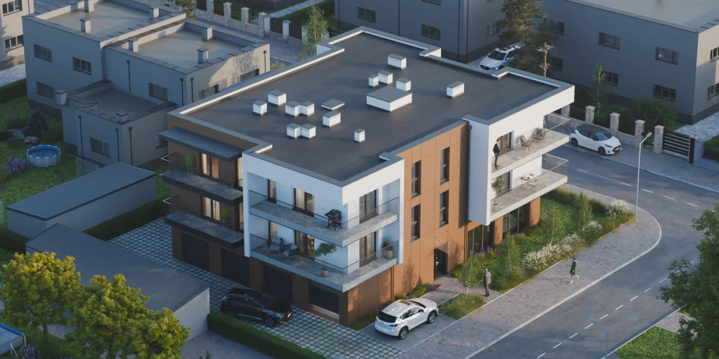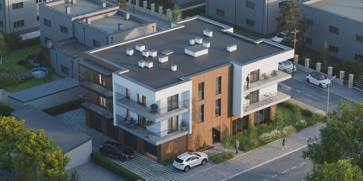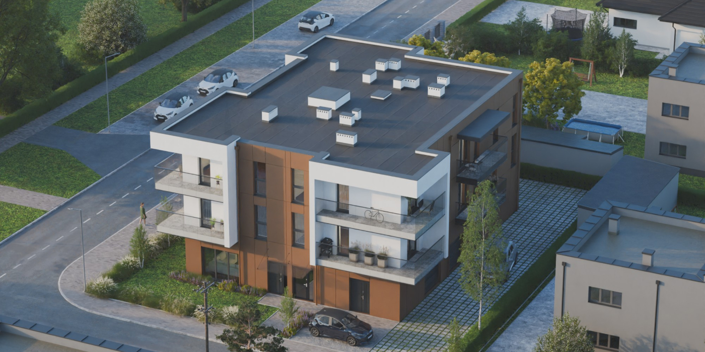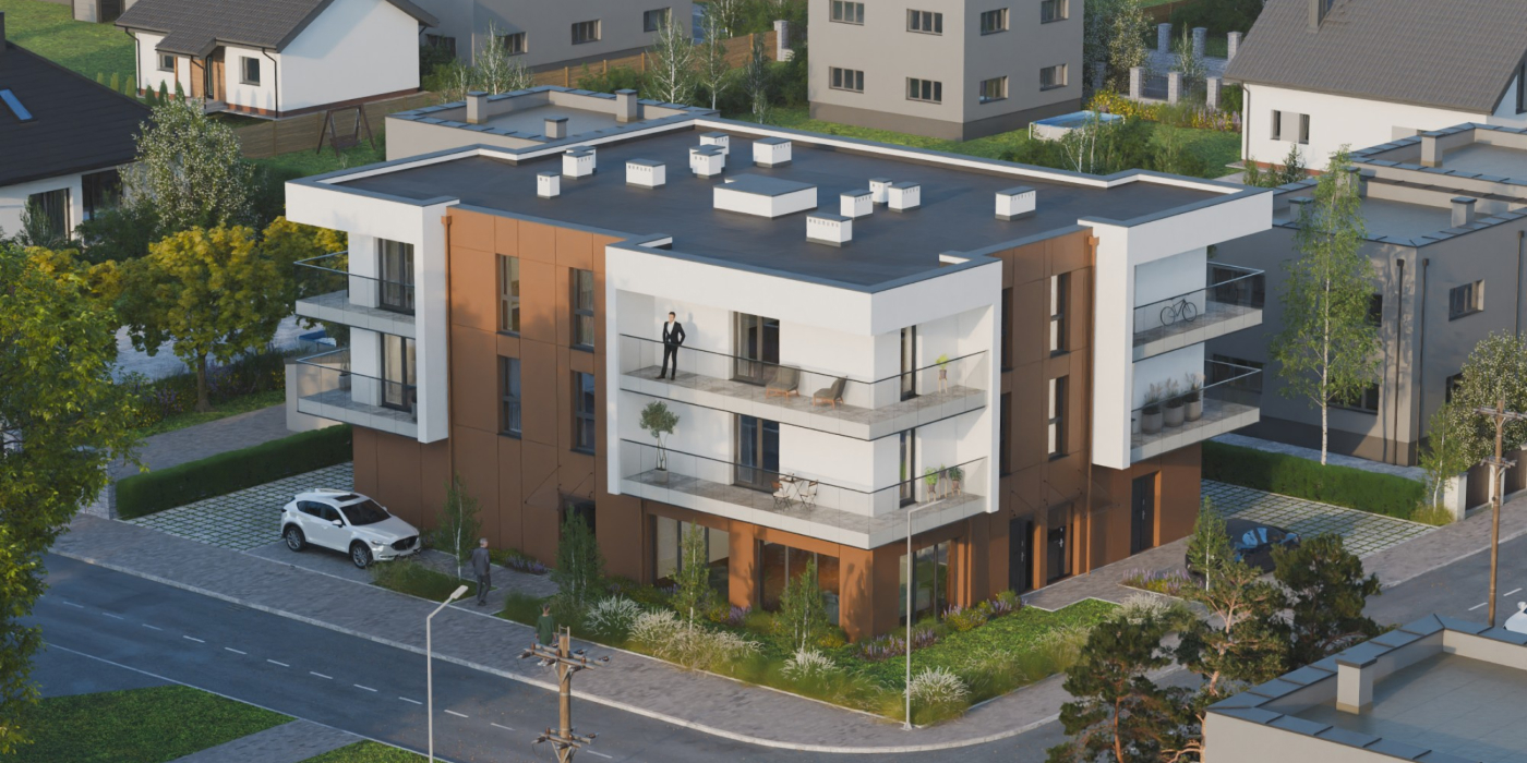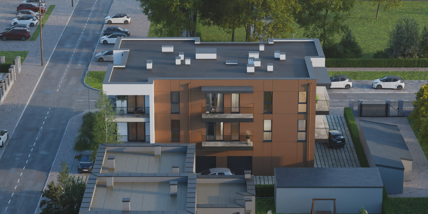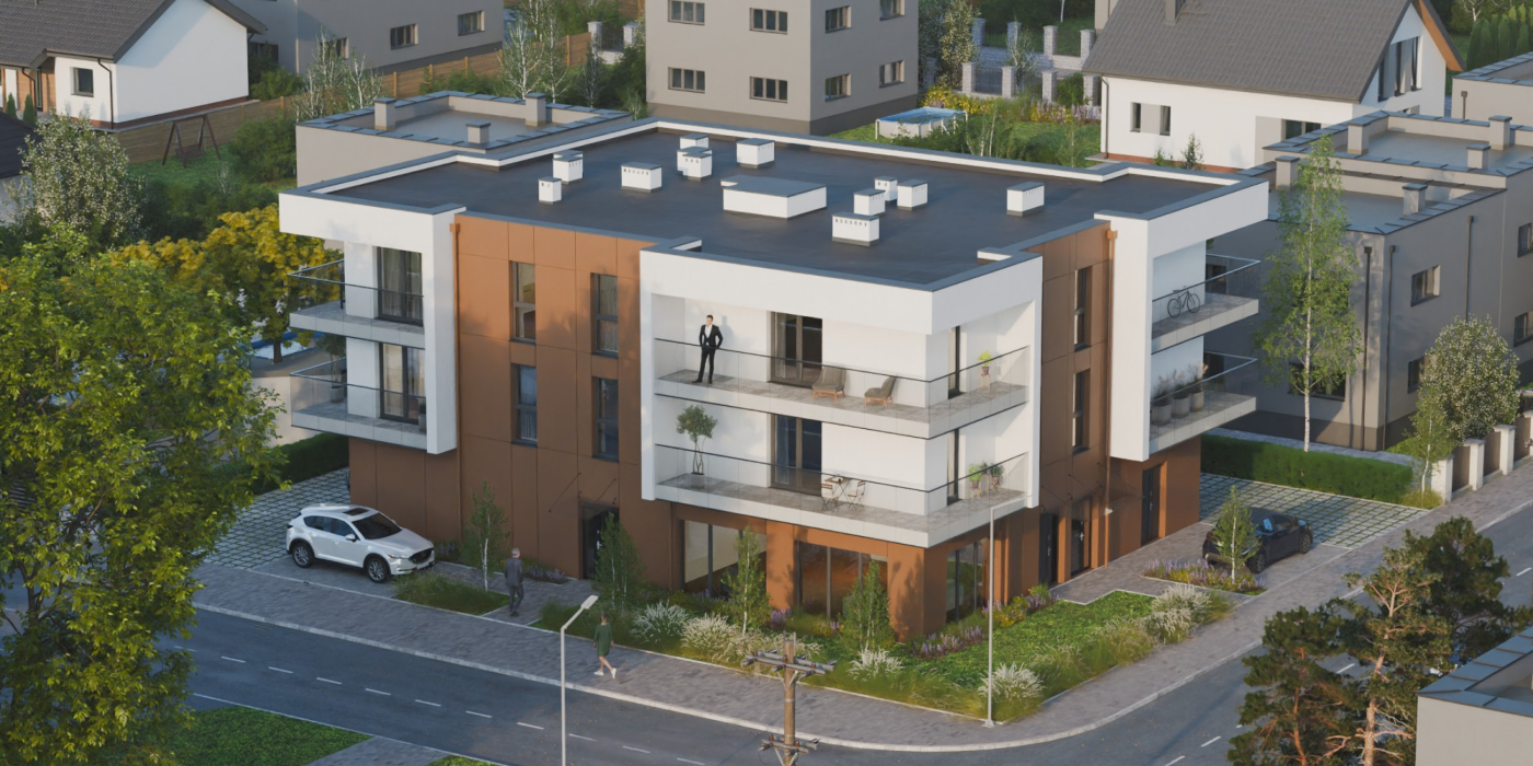 Inwestycja na osiedlu Szwederowo, przy ul. Nowej 9. Kameralny budynek wielorodzinny, trzykondygnacyjny stanowiący 14 mieszkań od 39 m² do 71 m².